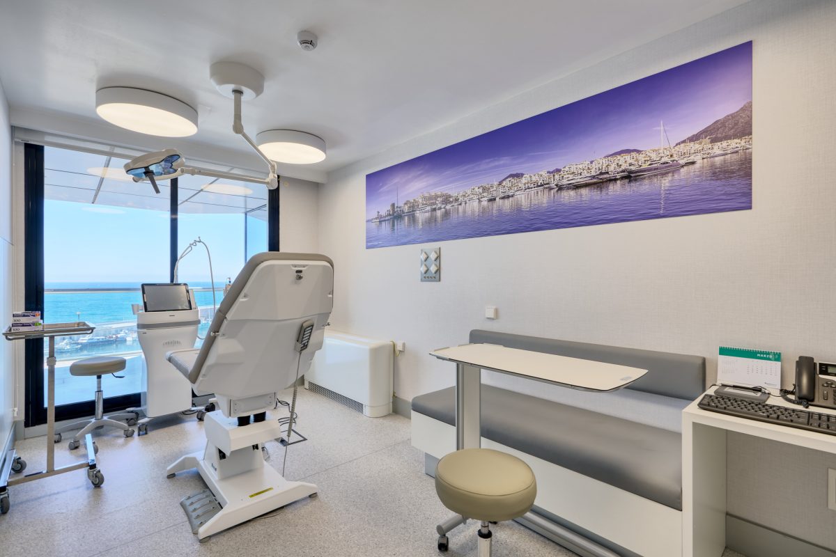 Se trata de un espacio de 15.000 m² diseñado para transformar por completo la experiencia del paciente. Las áreas de consultas y especialidades se inundan de luz natural gracias a amplios ventanales que, además, ofrecen unas vistas espectaculares del entorno de Marbella.